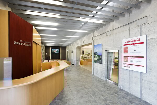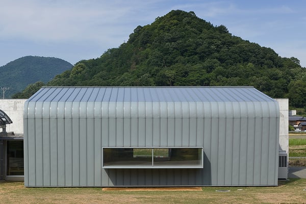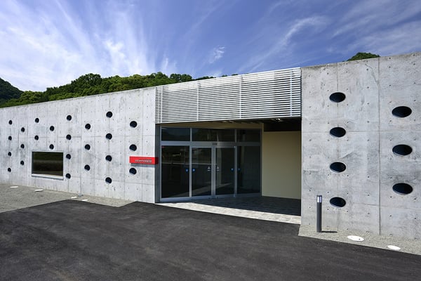 飛鳥時代の瓦窯遺跡の展示施設。登り窯の空気抜き穴をモチーフとし、建物正面のコンクリート壁面に斜めに穿った丸い開口部が特徴となっている。建物にアプローチするにつれ、丸い開口部が徐々に形状を変え、窯に見立てた細長いエントランス空間の表情に奥行を与える計画となっている。