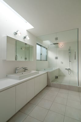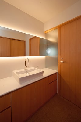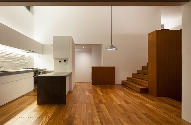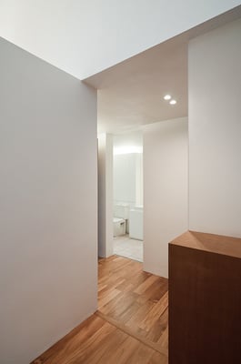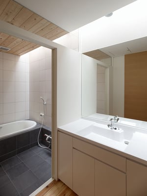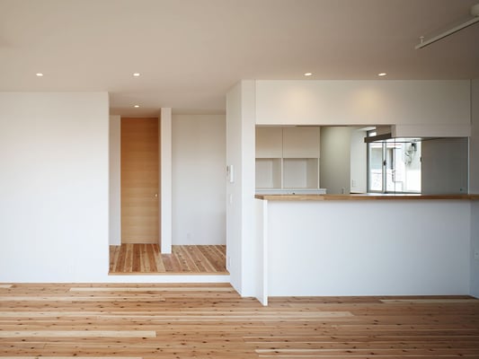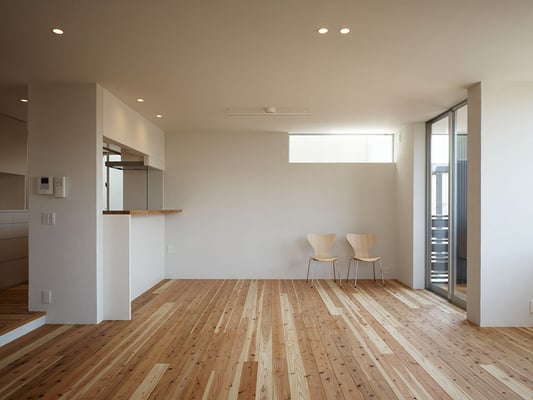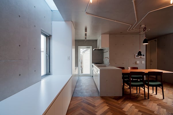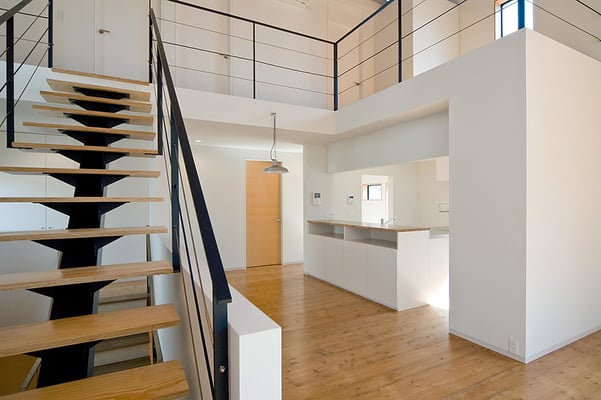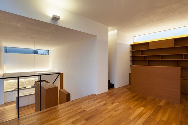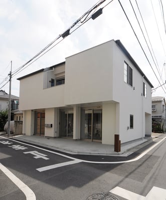 東京都内の住宅密集地における建替計画。1階を貸店舗、2階に住居を配置した複合用途の住宅。限られたスペースにおいて最大限の各室面積を確保するため、オープンなリビングを中心に配置し、リビングから各室へ直接アクセスできる計画としている。