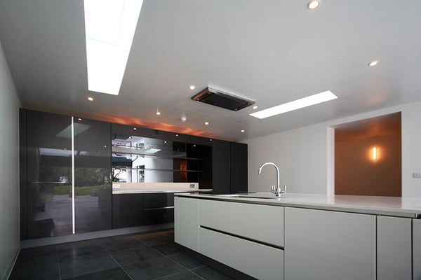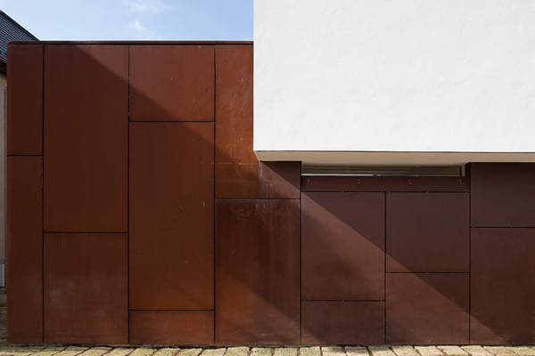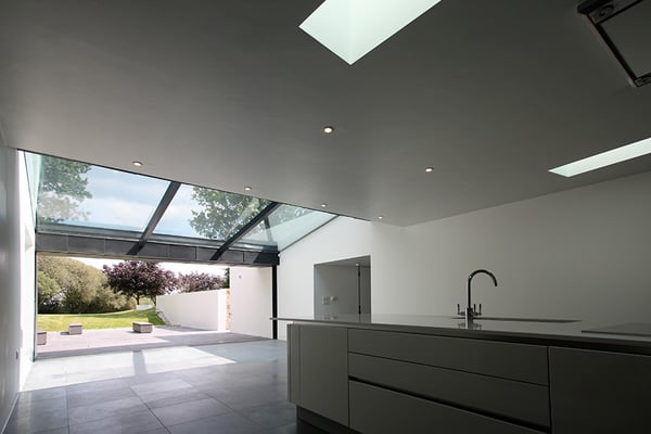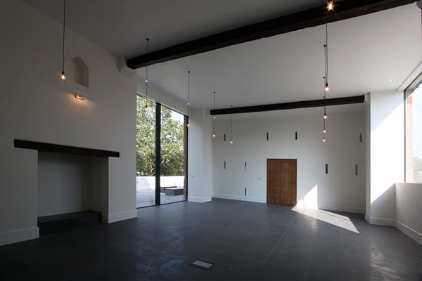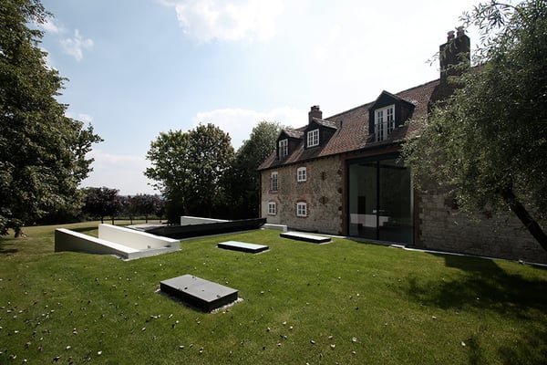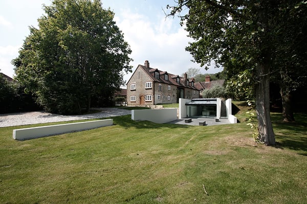 ハンプシャーの郊外にある古い納屋を改修した住宅。納屋前の高低差のある庭にダイニングキッチンを新たに埋め込み、オープンテラスと接続して開放的な環境を提供している。新旧の建物とランドスケープを立体的に融合した計画となっている。